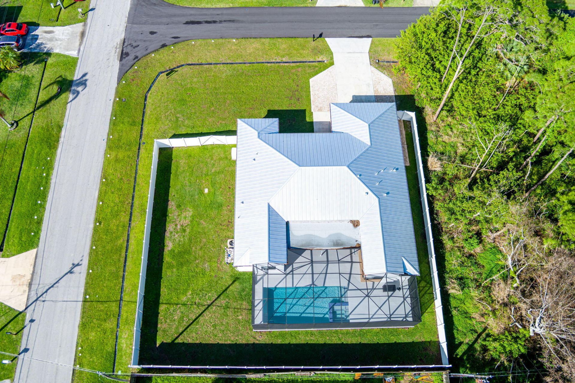 Welcome to a modern masterpiece where luxury and design unite in perfect harmony. This beautiful home features 4 bedrooms, 3 baths and over 2,400 sq ft of living area. From the moment you arrive, the extra-wide driveway and sleek standing seam metal roof hint at the elegance inside. Step through a custom wood-finished aluminum door into a world of soaring 12-ft ceilings, smooth stucco finishes, and porcelain tile that glistens under soft natural light. The kitchen is an entertainer's dream-anchored by a breathtaking 13-foot quartz island, stainless hood, top-tier LG appliances, and designer cabinetry that exudes sophistication. The primary suite is a private retreat, offering a spa-inspired bath with a freestanding tub, glass-enclosed shower with dual heads, and luxurious quartz details. Outdoors, serenity awaits-a heated, screened pool, relaxing spa, patio, and porch. With impact storm windows, a whole-house generator, and high-end finishes throughout, this home redefines effortless luxury. Every space feels curated, and every finish intentional. Great location, convenient to area shopping, schools, and local beaches.