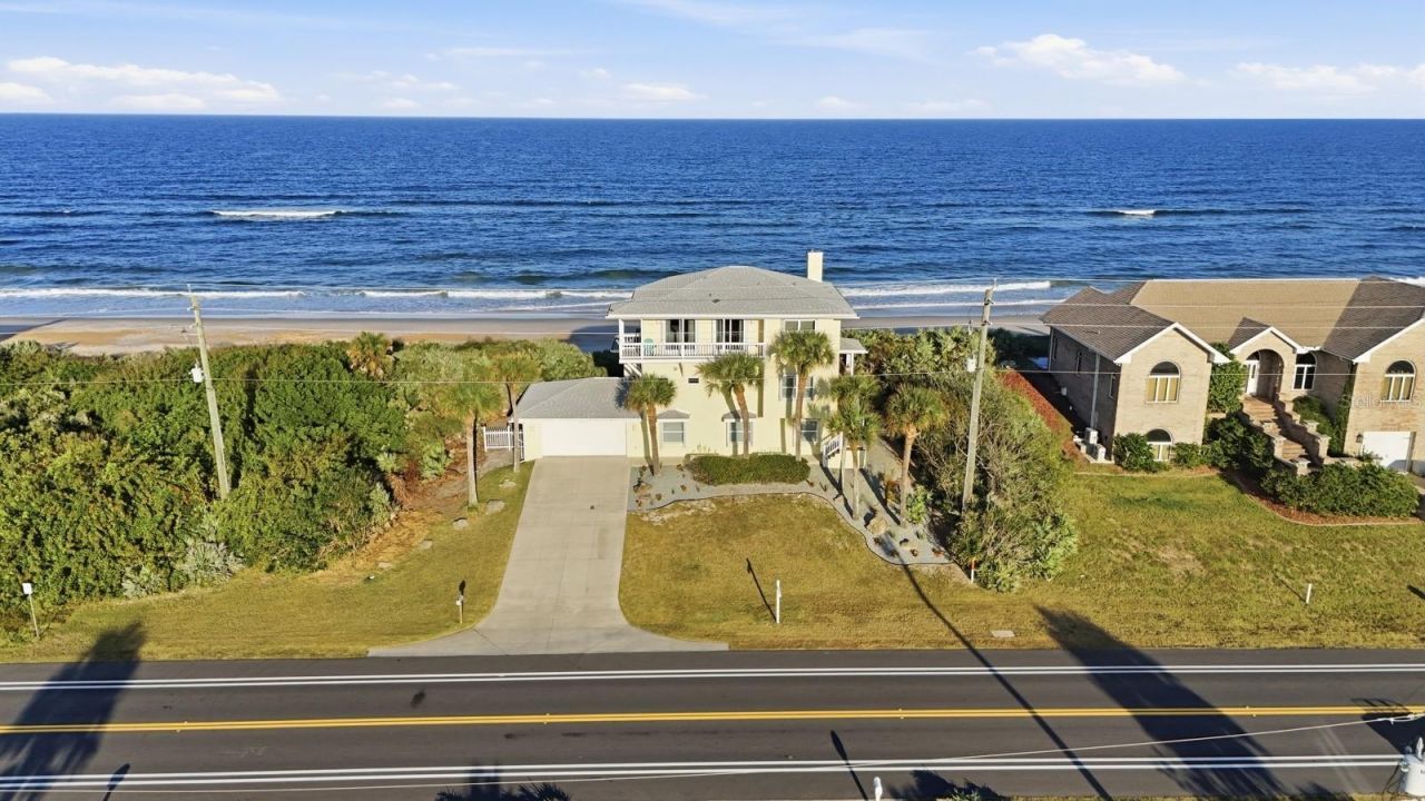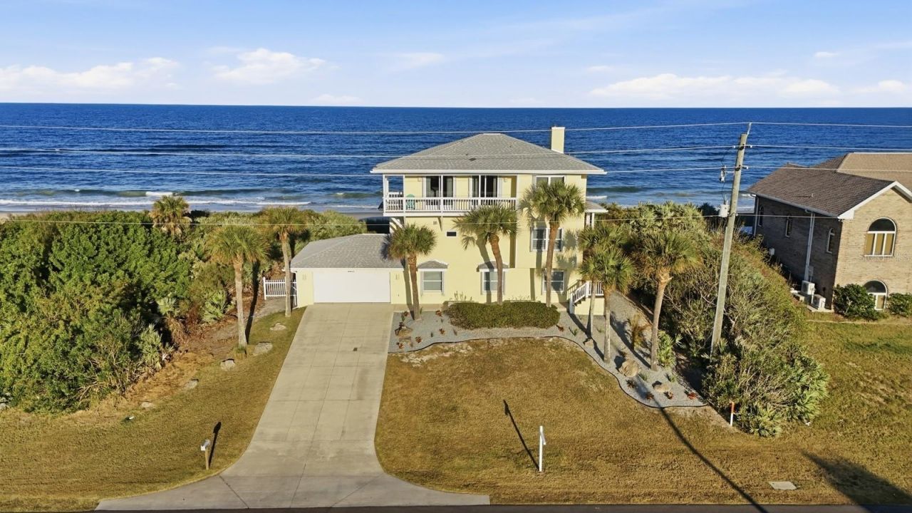 Oceanfront INVESTMENT OR ENJOYMENTDirect oceanfront living at its finest! This 5 bedroom, 3 bath, 3-story Flagler Beach home is sold turnkey and delivers breathtaking, unobstructed Atlantic views from every level. The moment you enter, soaring tall ceilings and dramatic floor-to-ceiling windows showcase the ocean like a living masterpiece, flooding the home with natural light. An established vacation rental income producer, this fully furnished property is ready for immediate use-whether as a high-performing rental or your own private beachfront getaway. Enjoy sunrises from multiple oceanfront decks, effortless beach access, and a prime location along N Ocean Shore Blvd-a rare opportunity to own a true oceanfront showpiece. Metal birds over fireplace do not convey